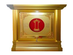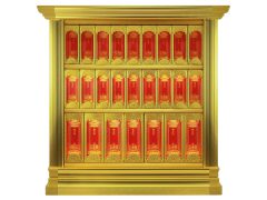 骨灰存放架是由箱體、面板、側板、頂蓋、底座、轉角、封板等構成,以及佛臺、掛落、佛龕等相關配件構成。