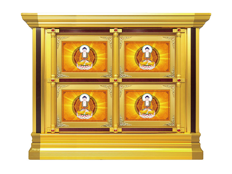 骨灰存放架是由箱體、面板、側板、頂蓋、底座、轉角、封板等構成,以及佛臺、掛落、佛 龕等相關配件構成。 箱體:分鍍鋅板、不銹鋼板、鋁板等五金板材箱體,鋁合金中空板扣接式箱體和純鋁壓鑄型 箱體。 面板:面板根據工藝不同、材料不同,風格各異、大不相同,既要起到美觀易分類作用,又 要起到防火、防塵、防潮、防蟲等作用。 側板:用于裝飾和保護箱體側面的作用,又可根據現場,對存放架分類的標識作用,一目了 然方便管理。 頂蓋、底座:都是穩固整列和整排箱體水平線,底座還起到一部分承重作用。 轉角、封板:箱體轉彎處和空隙處塑形的作用。 佛臺:由幾個骨灰存放架組成一個小型佛龕臺,用于放置佛像。 佛龕、掛落:整排存放架為了劃分區域,在每個區域靠墻上方,設置小型佛龕,為了美觀, 加上掛落。