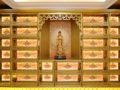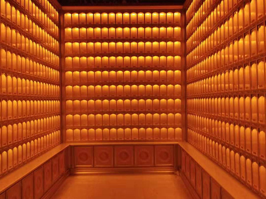 側板:用于裝飾和保護箱體側面的作用,又可根據現場,對佛龕架分類的標識作用,一目了 然方便管理。 頂蓋、底座:都是穩固整列和整排箱體水平線,底座還起到一部分承重作用。 轉角、封板:箱體轉彎處和空隙處塑形的作用。 地臺:多用于萬佛架及存放架底層,存放相關物品的作用。